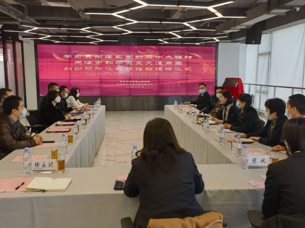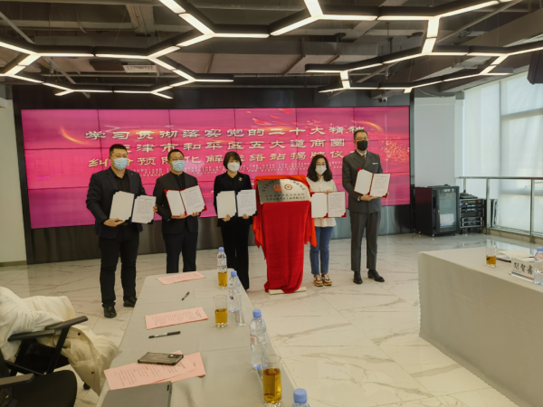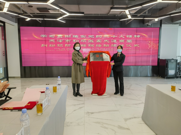 为深入学习宣传贯彻党的二十大精神,助力“平安建设”工作更加深入开展。进一步健全工商联与人民法院沟通联系机制,优化和平区法治营商环境,推动涉民营企业纠纷源头化解、站内化解、快速化解,和平区工商联、和平区法院携手和平区五大道街道商会,联合成立五大道纠纷预防化解联络站,开展“无讼”商圈试点工作,并于12月7日上午举行联络站揭牌仪式。