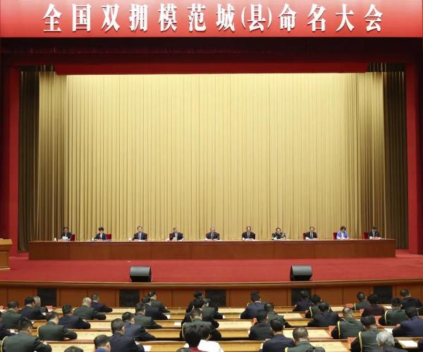 大会宣读了关于命名全国双拥模范城(县)的决定,并为全国双拥模范城(县)代表颁奖。有关军地代表作了发言。