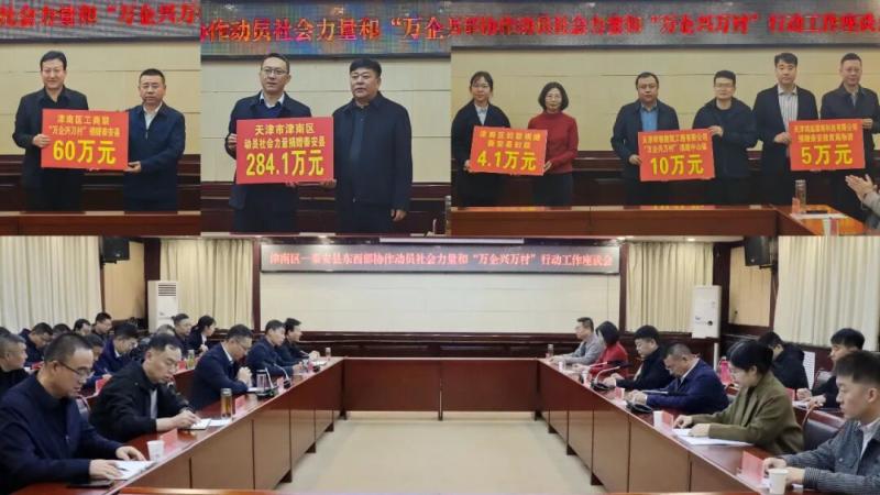活动中,在秦安、灵台两县分别召开东西部协作动员社会力量和“万企兴万村”行动工作座谈会,秦安县委常委、副县长包振国,县委常委、副县长杨涛,灵台县委副书记陈立,县委常委、副县长李欢对津南区给予秦安、灵台的倾情帮扶表示衷心感谢,并分别介绍了当地县情,2024年度东西部协作动员社会力量和“万企兴万村”行动资金使用、项目建设情况以及下一步工作打算。现场举行捐赠仪式,区委统战部、区工商联、区妇联以及天津帝雅建筑工程有限公司、天津鸿远服饰科技有限公司、天津博盛睿创科技有限公司、肯拓智能装备(天津)集团有限公司等爱心企业向秦安县捐赠358.2万元帮扶资金和5万元援助物资,向灵台县捐赠帮扶资金234.6万元和306.1万元援助物资。