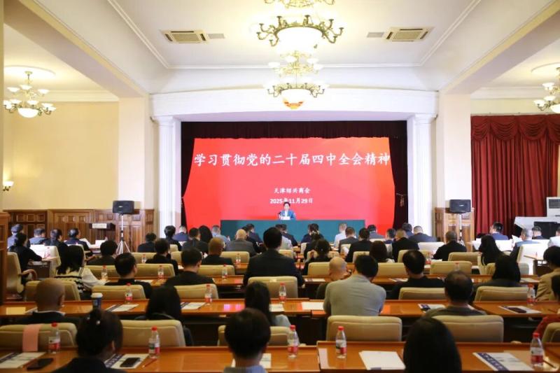2025年11月29日下午,天津绍兴商会组织会员企业传达学习贯彻党的二十届四中全会精神和天津市委十二届七次全会精神。天津市工商联副主席、天津绍兴商会会长张秀燕作宣讲报告。