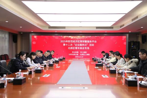 为深入学习贯彻党的二十届四中全会精神和习近平总书记在民营企业座谈会上的重要讲话精神,以及公安部、市公安局关于服务经济高质量发展的部署要求,促进民营经济健康发展、高质量发展,日前,市工商联法律服务部会同市局经侦总队,联合北辰区工商联、公安北辰分局,共同走进北辰区青年商会,开展2025年第十二次防范经济犯罪预警服务平台“企业服务日”活动。