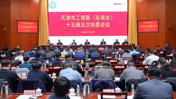 2026年1月30日,天津市工商联(总商会)十五届五次执委会议召开。会议传达学习中央经济工作会议、全国工商联十三届四次执委会议、市委十二届八次全会暨市委经济工作会议、市两会精神,总结2025年工作,部署2026年工作任务。