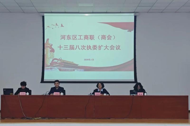 日前,天津市河东区工商联(商会)召开十三届八次执委扩大会议。区工商联(商会)执委、市区共管异地商会负责同志共计60余名企业家齐聚一堂,共商民营经济发展大计。会议核心聚焦政策精神传达与工作部署,系统学习宣传贯彻党的二十届四中全会精神、习近平法治思想及中央、市委、区委经济工作会议精神,全面总结2025年工作成效,科学谋划2026年重点任务,为“十五五”时期民营经济高质量发展筑牢基础。