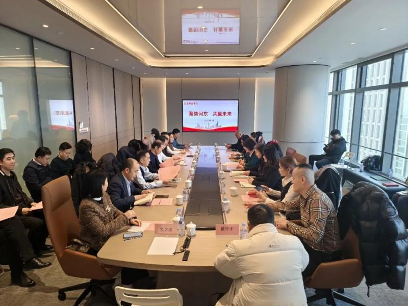 深入交流,精准对接发展需求。座谈交流环节气氛热烈、务实高效。区投促局负责同志详细介绍河东区“一站一带一园多点”总体布局下的重点招商方向与产业政策;区政务服务办负责同志系统解读近期优化营商环境、提升服务效能的具体举措。自由发言阶段,企业家代表们结合自身发展和行业趋势,围绕融入区域发展布局、拓展市场空间、推动产业协同等方面畅所欲言,商会、企业围绕合作需求开展“链接”,从参会者转变为合作者、好伙伴,在严严冬日抱团发展。与会部门负责同志现场互动,积极回应企业关切,对于需进一步研究的问题做了详细记录。