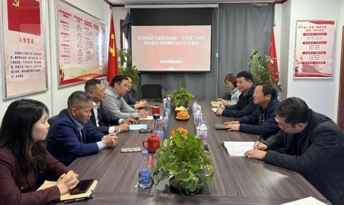 在天津江苏商会,王智东一行观看了商会宣传片,详细了解商会筹备过程、组织架构、会员服务机制及近期工作开展情况。会长表示,天津江苏商会与宁河区联系紧密、友情深厚,对宁河区“六新产业”发展及农文旅融合项目高度关注,希望双方持续加强合作交流,携手开创共享机遇、共赢发展的新局面。
