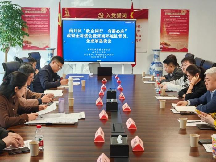 为深入贯彻中央经济工作会议精神,精准宣传融资惠企政策,持续优化区域营商环境,日前,南开区政务服务办、南开区工商联联合举办“政企同行・有需必应”政·银·企对接会暨营商环境恳谈会。会议聚焦企业融资需求与营商环境优化,搭建政银企沟通桥梁,助力区域经济高质量发展。