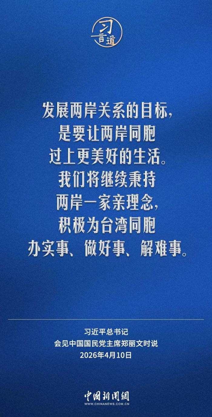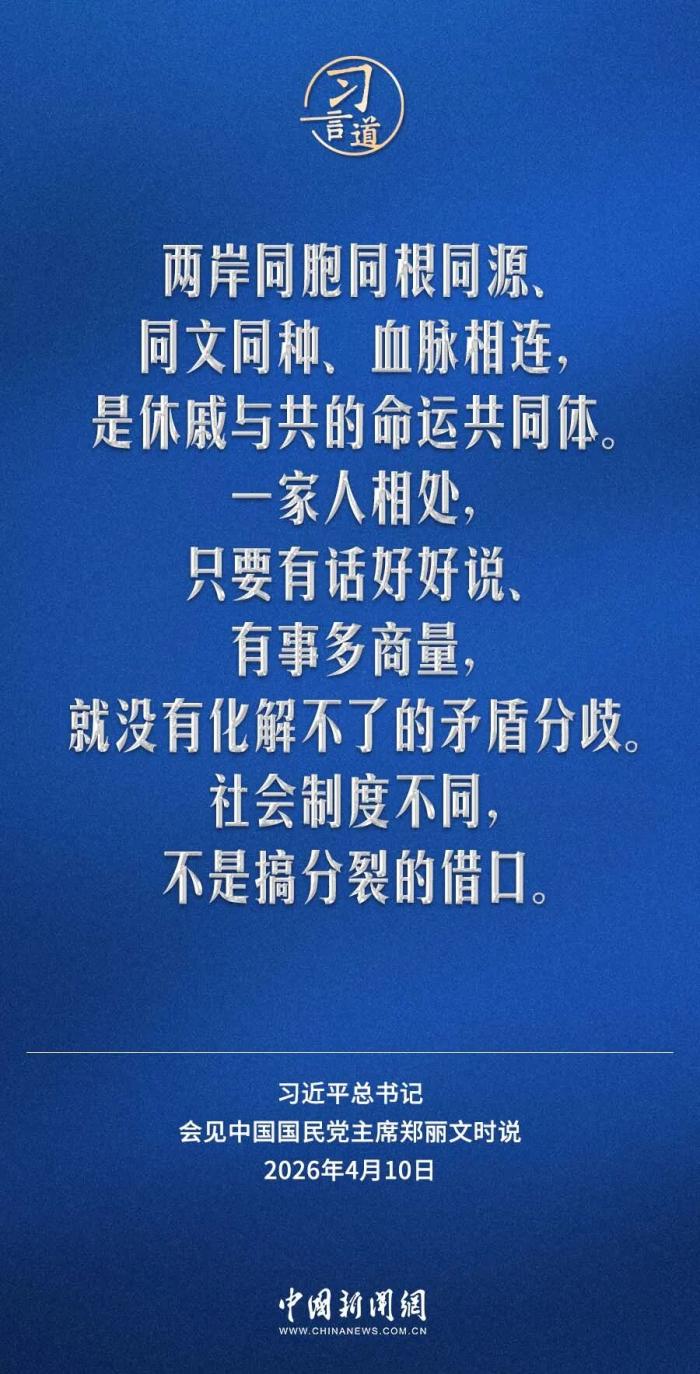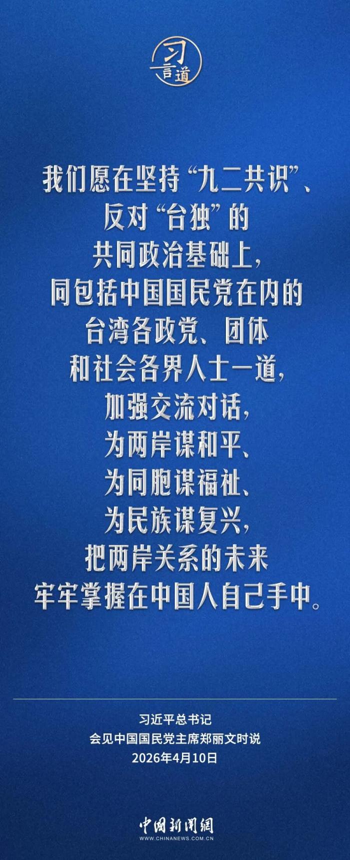 4月10日,中共中央总书记习近平在北京会见了郑丽文主席率领的中国国民党访问团。他指出——